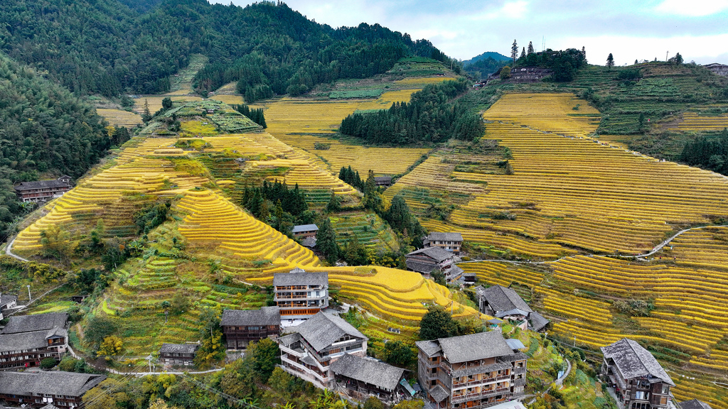 Il 23 ottobre, nella contea di Longsheng, a Guilin nel Guangxi, i turisti stanno ammirando il panorama notturno delle terrazze di riso a Longji. In autunno, le risaie a terrazze si tingono d'oro, creando un magnifico paesaggio durante la stagione del raccolto.