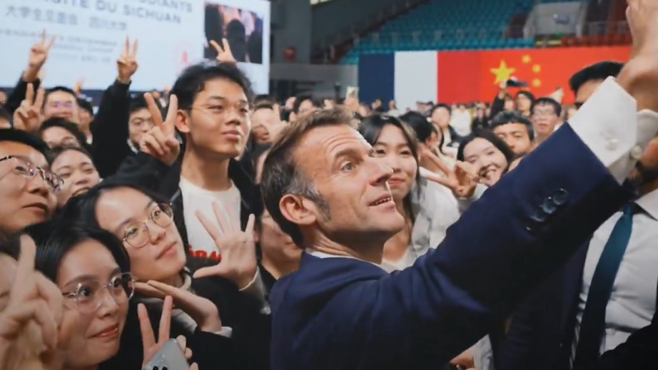 Macron pubblica un post in cinese e inglese: "Thank you for your warm welcome!"
