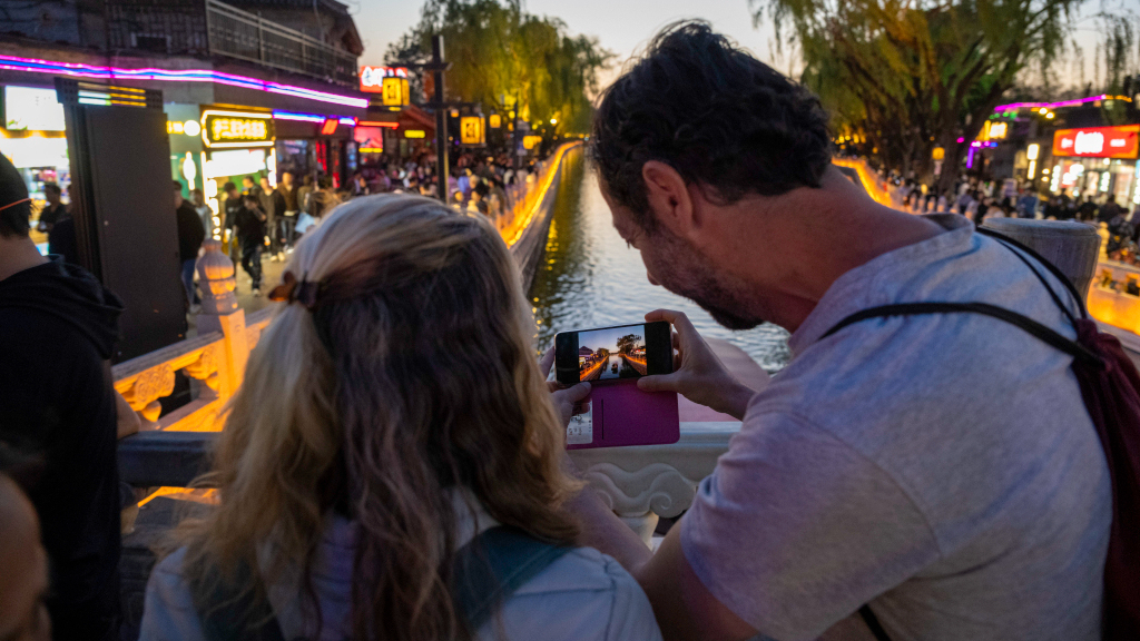 Il 20 aprile 2026, i turisti stranieri hanno visitato l’area panoramica di Shichahai, nella parte settentrionale dell’asse centrale di Beijing, per immergersi nell’antico corso d’acqua della capitale e nel fascino della vita popolare.