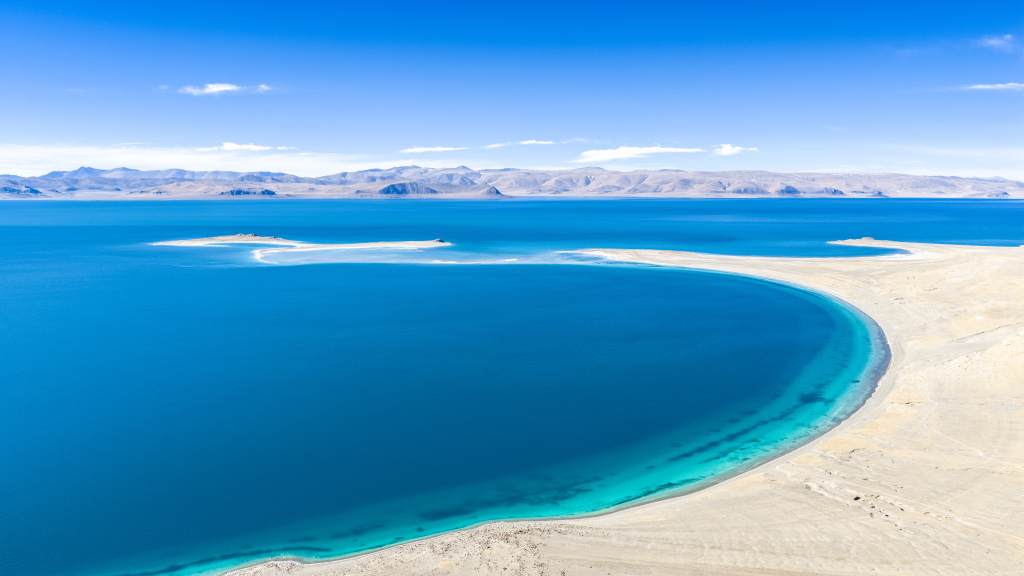 Nella contea di Coqen, nella prefettura di Ngari dello Xizang, il monte a forma di cappello di paglia e le creste sabbiose sulle rive del lago Zhari Namco creano un paesaggio unico. Il lago Zhari Namco è il più grande specchio d’acqua della prefettura di Ngari, con acque limpide e colori ben distinti.